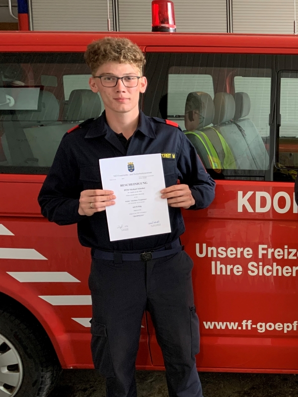 PFM Michael Schober kann aufgrund der positiven Absolvierung dieser Ausbildung nun auch unsere aktive Mannschaft bei der Abwicklung von Einsätzen unterstützen und ist weiters auch berechtigt weitere Ausbildungen am NÖ Feuerwehr- und Sicherheitszentrum zu absolvieren.