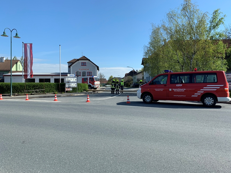 Wenige Minuten nach der Alarmierung rückten die Mitglieder der Freiwilligen Feuerwehr Göpfritz/Wild unter der Einsatzleitung von BR Christian Hübl zum umgefallenen Maibaum - welcher quer über die L55 lag - aus. Als Erstmaßnahme wurde die unübersichtliche Kreuzung abgesichert, damit kein Fahrzeug in den Baum kracht und die Polizei verständigt.