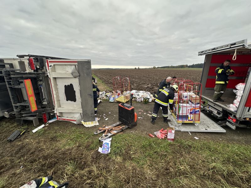 Nach Abklärung mit dem Eigentümer des LKW´s konnte durch die Einsatzleitung die Bergung des LKW mit Unterstützung eines mobilen Autokrans einer ortsansässigen Firma in die Wege geleitet werden. Bevor die Bergung des LKW in Angriff genommen werden konnte, musste allerdings im Vorfeld der gesamte Inhalt des Anhängers sowie des LKW´s händisch durch die eingesetzten Feuerwehrmitglieder ausgeräumt werden.