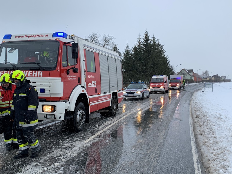Unter der Einsatzleitung von HBM Thomas Weidenauer rückten nur 4 Minuten nach der Alarmierung die Mitglieder der Freiwilligen Feuerwehr Göpfritz/Wild mit dem RLFA 2000, LFA, KDOF und dem MTF/VF zur angegebenen Einsatzadresse auf der L55 aus.