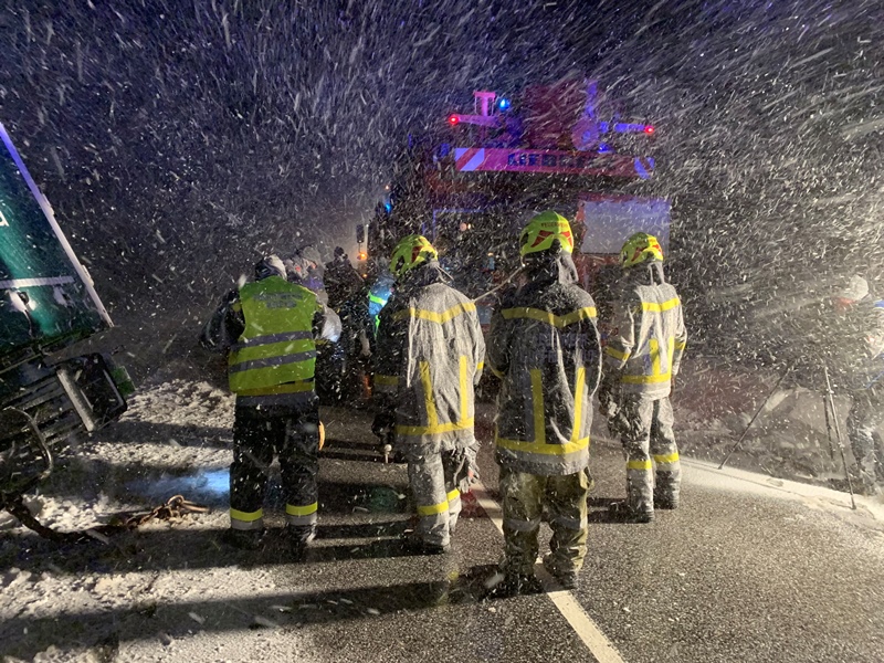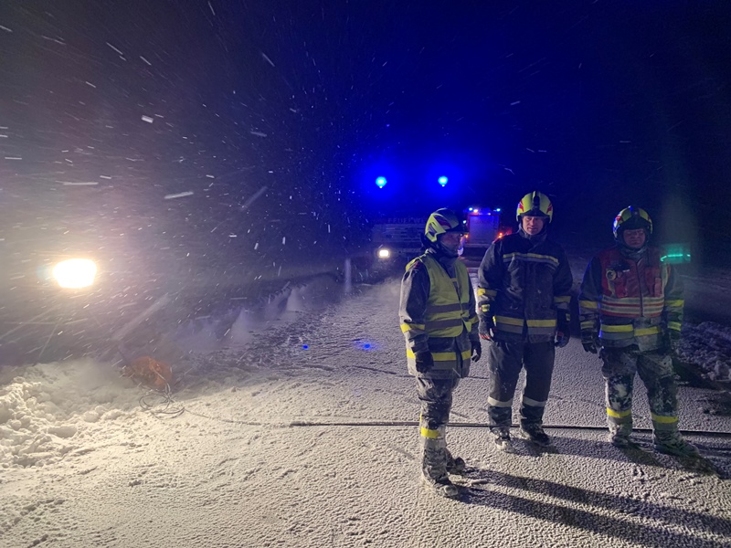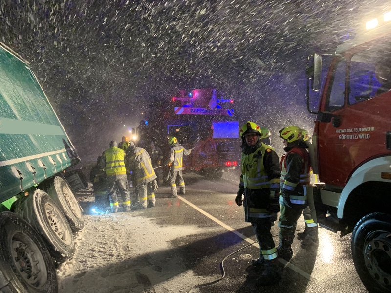 Trotz der widrigen Wetterbedingungen und dem teilweise sehr starken (beinahe waagrechten) Schneefall und dem sehr starken Wind war es möglich, den LKW ohne weitere Schäden auf die Fahrbahn zurück zu ziehen. Dies gelang unter Einsatz der 20t Seilwinde des Kranfahrzeuges der FF Krems sowie der 5t Seilwinde des Rüstlöschfahrzeuges der Feuerwehr Göpfritz/Wild.
