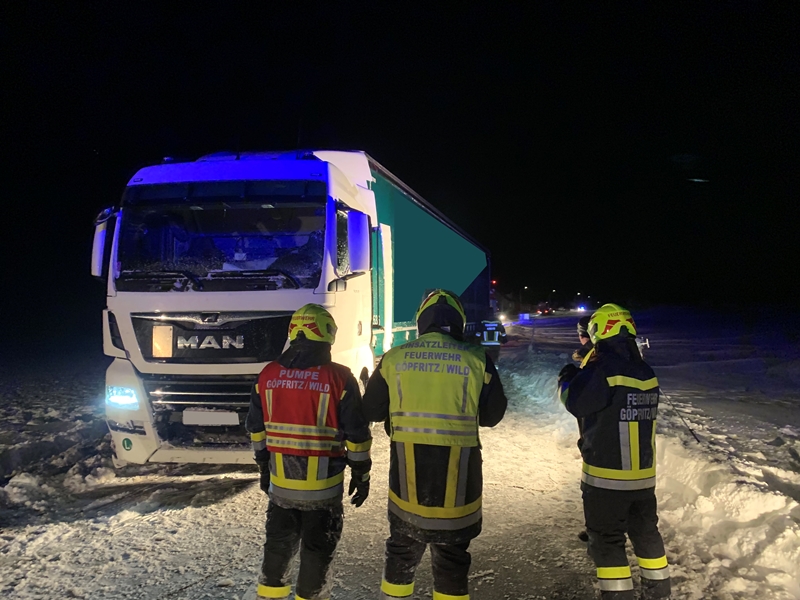Almosen - Die Freiwillige Feuerwehr Göpfritz/Wild wurde am Montag, den 14. Jänner 2019 um 14:52 Uhr, zu einer LKW Bergung auf der L55 kurz nach Göpfritz/Wild alarmiert.