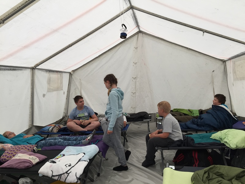 Nachdem die Jugendlichen am beindruckenden Lagergelände mit einem wunderbaren Ausblick auf die Berge eintrafen wurde sofort damit begonnen, das Zelt gemeinsam mit den Betreuern aufzubauen. Wobei die Jugendlichen einen Großteil der Aufbauarbeiten selbst gemacht haben. Schon nach kurzer Zeit war das Zelt aufgebaut und man konnte mit dem Einräumen beginnen und in weiterer Folge den Vorplatz des Zeltes gestalten.