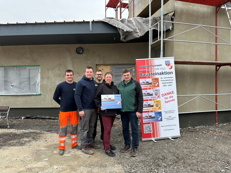 Mit dem Ankauf eines oder mehrere Bausteine unterstützen Sie direkt die Mitglieder der Freiwilligen Feuerwehr Göpfritz/Wild beim Bau des neuen Feuerwehrhauses. Als Zeichen der Wertschätzung erhalten Sie einen dauerhaften Platz auf der Ehrentafel im neuen Gebäude.