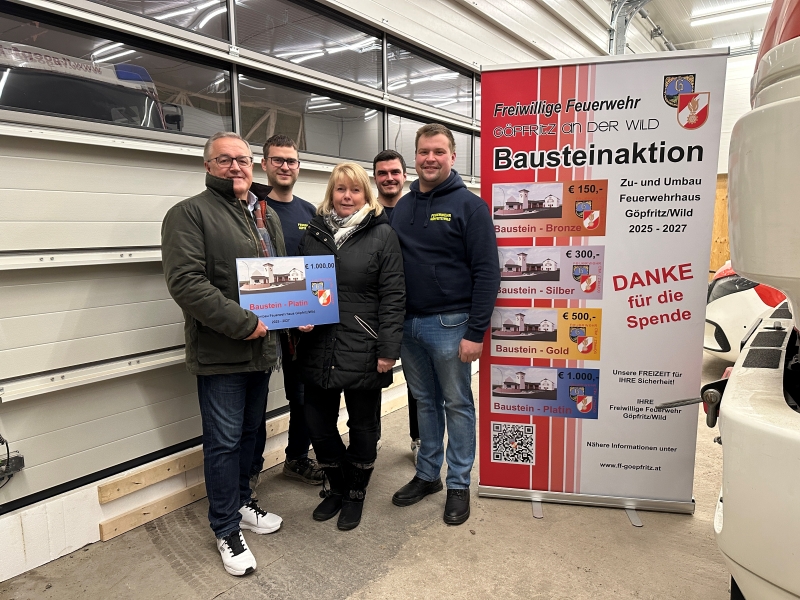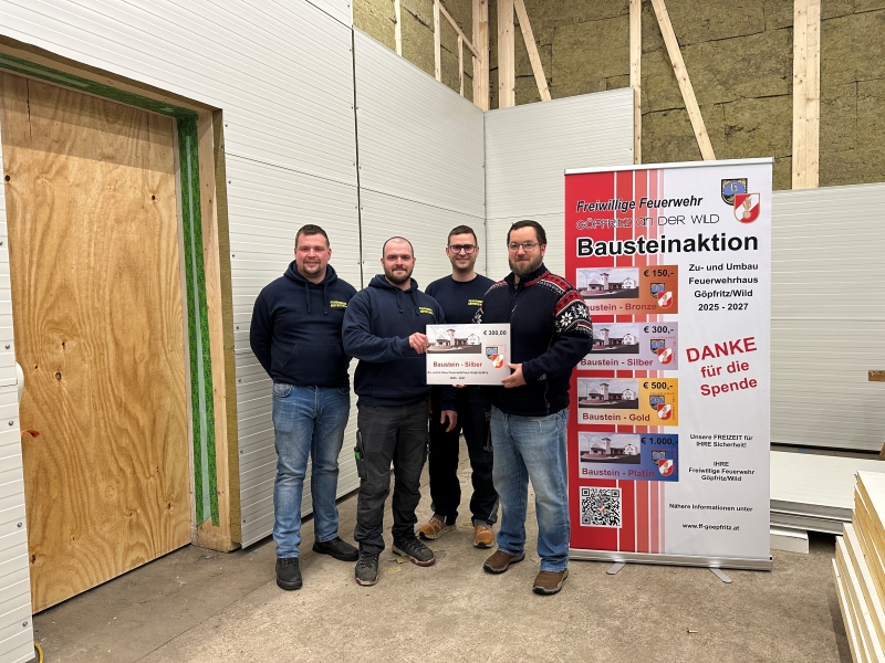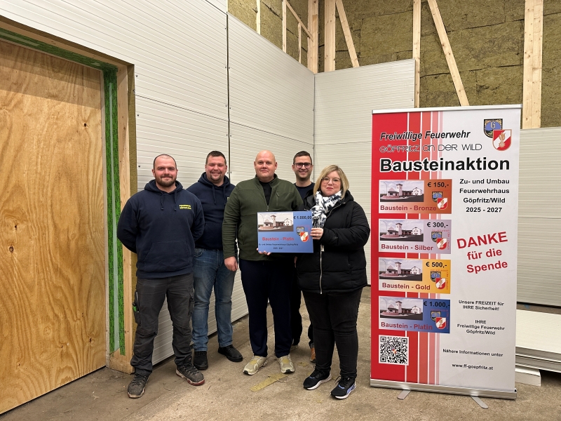 Mit dem Ankauf eines oder mehrere Bausteine unterstützen Sie direkt die Mitglieder der Freiwilligen Feuerwehr Göpfritz/Wild beim Bau des neuen Feuerwehrhauses. Als Zeichen der Wertschätzung erhalten Sie einen dauerhaften Platz auf der Ehrentafel im neuen Gebäude.