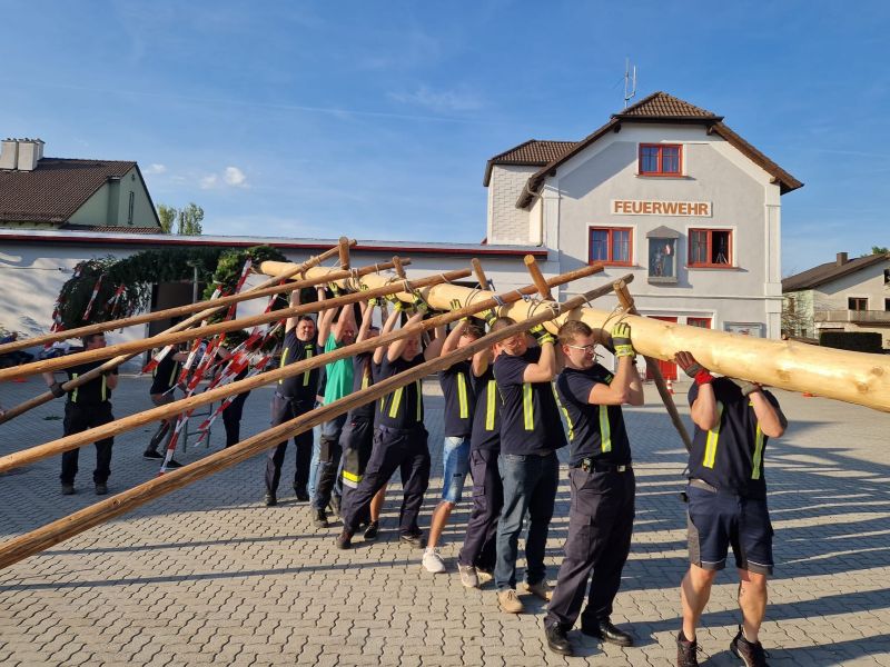 Göpfritz/Wild - Auch heuer folgte man wieder der Tradition des Maibaumaufstellens. So machten sich die Mitglieder der Freiwilligen Feuerwehr Göpfritz/Wild am frühen Abend des 30. April 2025 auf den Weg um den bereits vorbereiteten Maibaum abzuholen und zum Feuerwehrhaus zu überstellen.