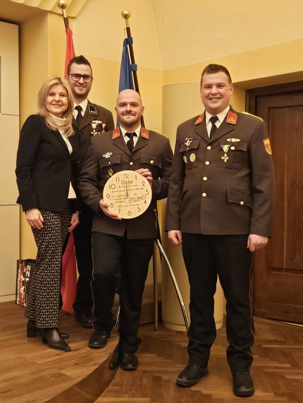 Aufgrund des Ausscheidens des bisherigen Feuerwehrkommandanten HBI Stefan Gutmann aus seiner Funktion bedankte sich das neue Feuerwehrkommando mit einem Präsent für die bisher ausgeübte Funktion.