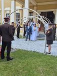 Die Mitglieder der FF Göpfritz/Wild empfingen das frisch vermählte Brautpaar mit einer Schlauchbogen-Spalier.