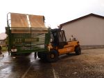 Aus bisher unbekannter Ursache löste sich auf einem voll beladenen Ladewagen während der Fahrt die Hinterachse vom Ladewagen, woraufhin der Aufbau des Ladewaggens umkippte und das mitgeführte Ladegut auf die Fahrbahn kippte.