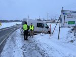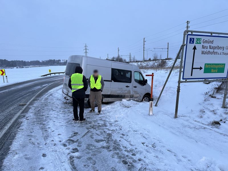 Der Lenker eines Kastenwagens kam im Bereich der Eisenbahnunterführung auf der schneeglatten Fahrbahn von der Straße ab und blieb im Graben stecken.