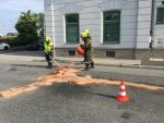 Nach einem technischen Gebrechen an einem Autobus flossen Betriebsstoffe aus, weshalb die Feuerwehr ausrückte, um die Betriebsstoffe zu binden.