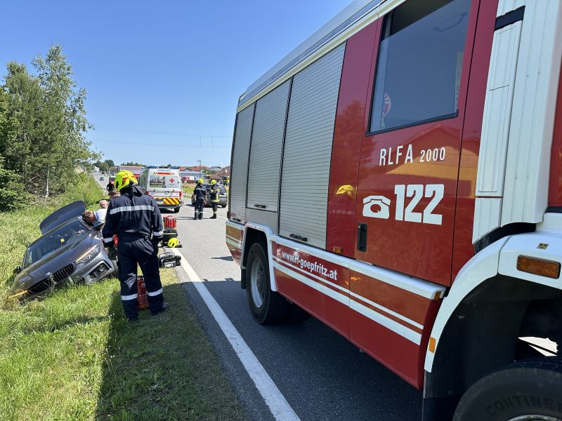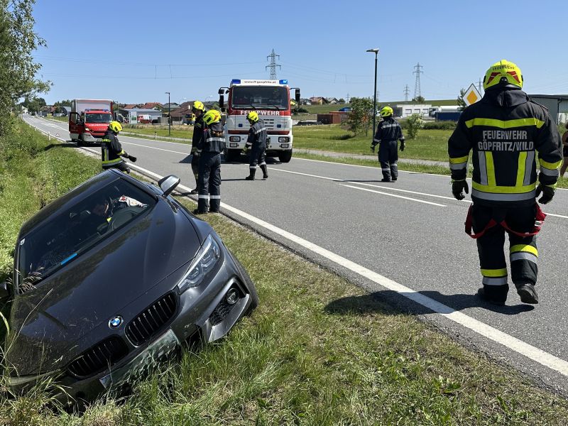Der Lenker eines PKW ist auf der LB2 bei Kilometer 80,6 aus uns nicht bekannter Ursache von der Fahrbahn abgekommen und im angrenzenden Straßengraben zum Stillstand gekommen - der Lenker konnte das Unfallfahrzeug unverletzt verlassen, die Beifahrerin war allerdings im Fahrzeug eingeschlossen und konnte dieses nicht selbstständig verlassen.