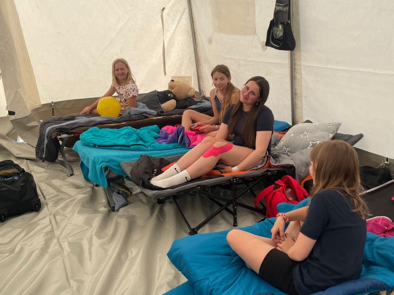 Nachdem die Jugendlichen am beindruckenden Lagergelände eintrafen, wurde sofort damit begonnen das Zelt gemeinsam mit den Betreuern aufzubauen. Wobei die Jugendlichen einen Großteil der Aufbauarbeiten selbst gemacht haben. Schon nach kurzer Zeit war das Zelt aufgebaut und man konnte mit dem Einräumen beginnen und sich am Lagergelände wohlfühlen.