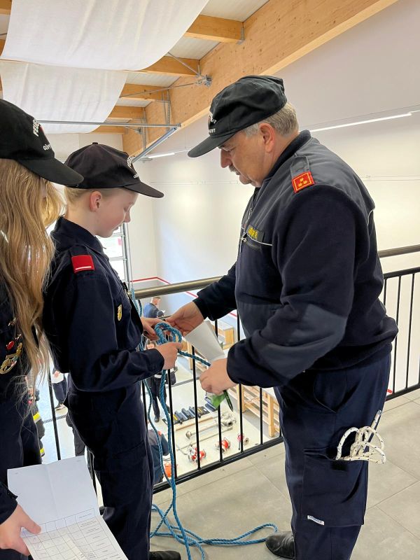 Während die 10- und 11-Jährigen im Rahmen des Wissenstestspiels knifflige Fragen beantworten mussten, ging es für den etwas älteren Nachwuchs richtig zur Sache. Ihr Wissen wurde bei der Geräte- und Ausrüstungskunde für den Brandeinsatz, der Geräte- und Ausrüstungskunde für die technische Hilfeleistung, den Dienstgraden, der Knotenkunde und den Kleinlöschgeräten auf die Probe gestellt.
