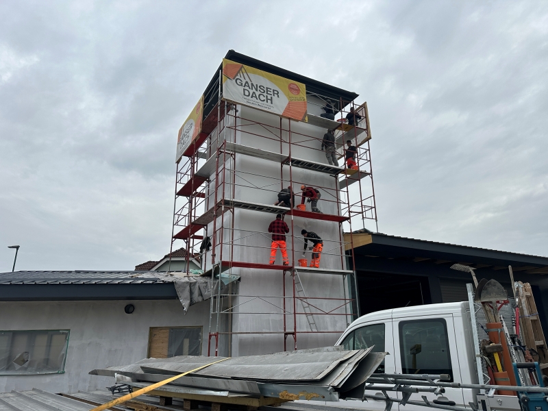 | KW 45-2025 | Aufstellen der Halle und des Dachstuhles sowie Stopfen Brandschutz | ||