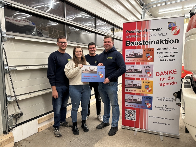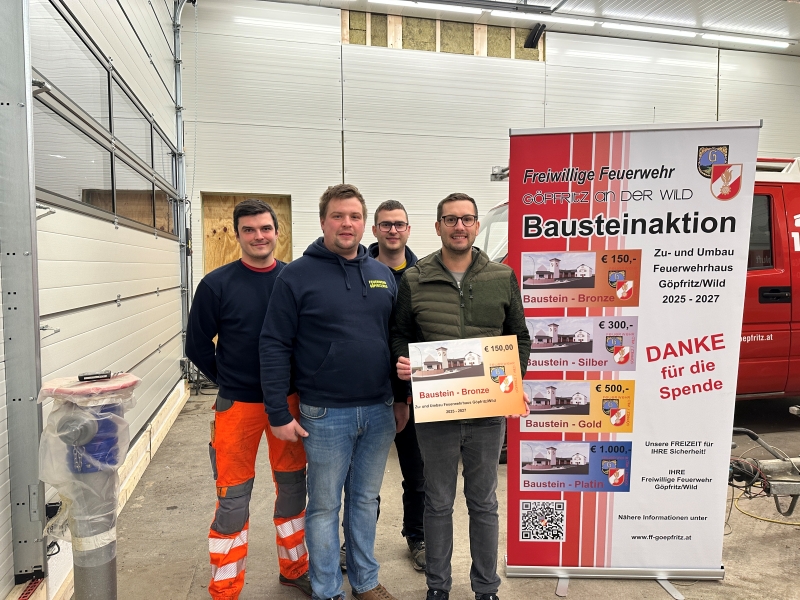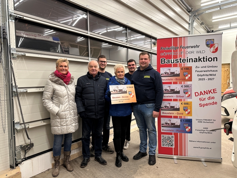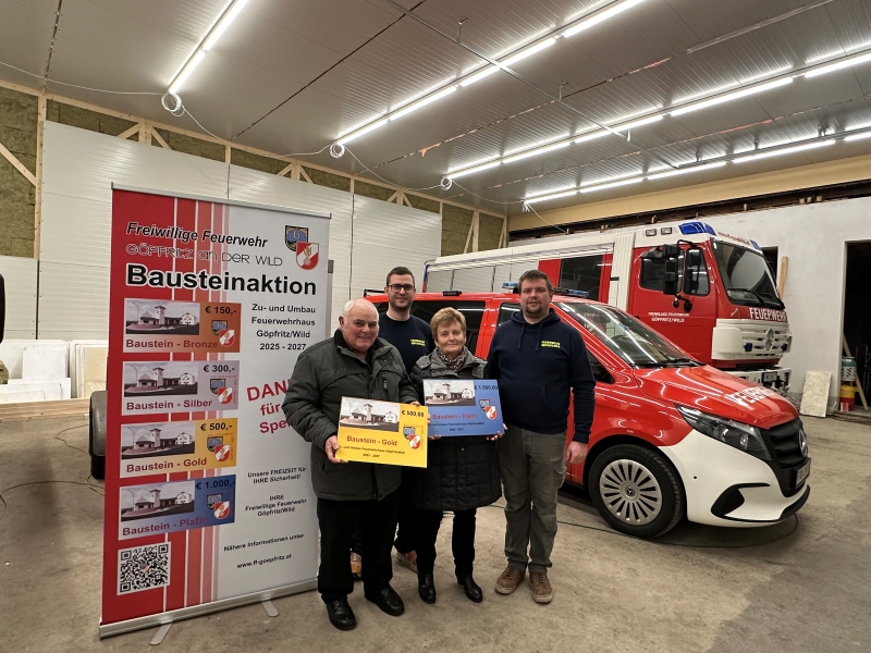 Mit dem Ankauf eines oder mehrere Bausteine unterstützen Sie direkt die Mitglieder der Freiwilligen Feuerwehr Göpfritz/Wild beim Bau des neuen Feuerwehrhauses. Als Zeichen der Wertschätzung erhalten Sie einen dauerhaften Platz auf der Ehrentafel im neuen Gebäude.