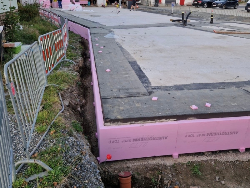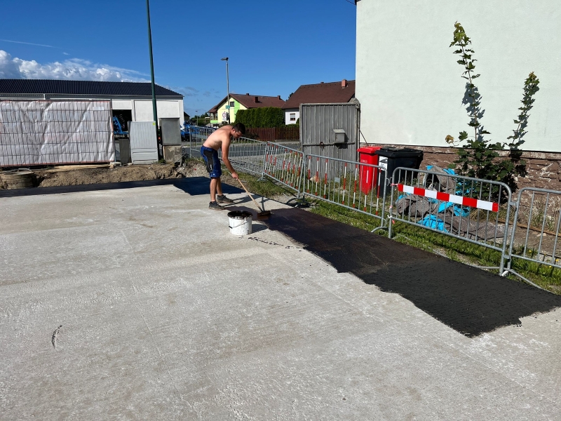 | KW 29-2025 | Betonieren der Schalsteine, Verlegen des Kanals, Einschottern der Fundamentplatte, Verlegen der Dämmung, Eisenmatten und Blitzableiter, Eisenbinden | ||
