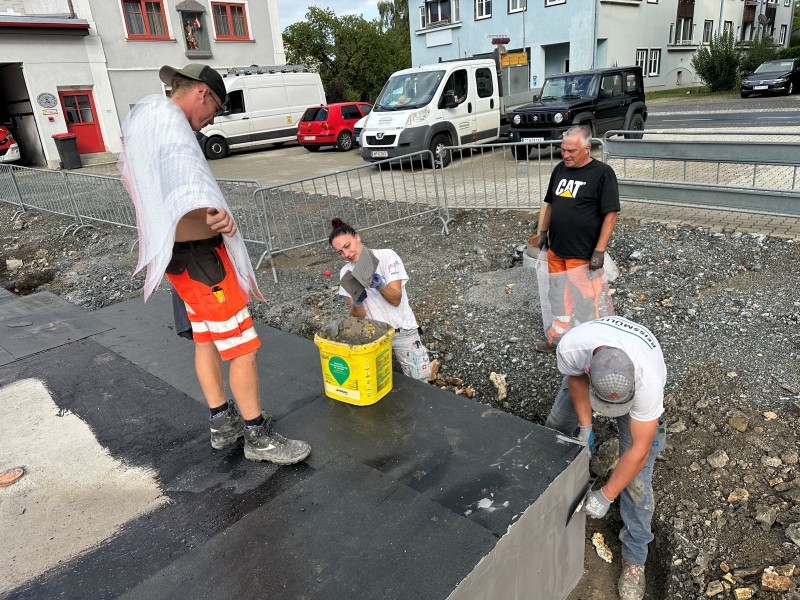 | KW 38-2025 | Kleben XPS, Befestigung Noppenfolie, Anschütten des Platzes | ||
