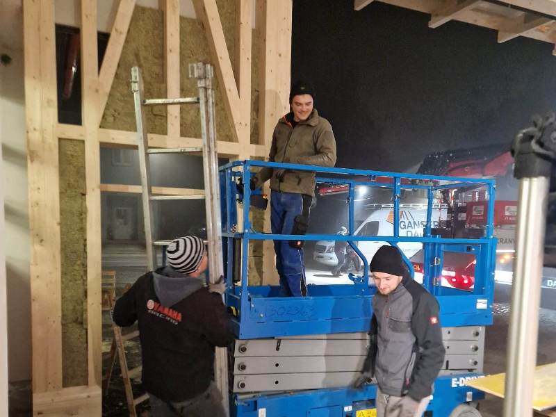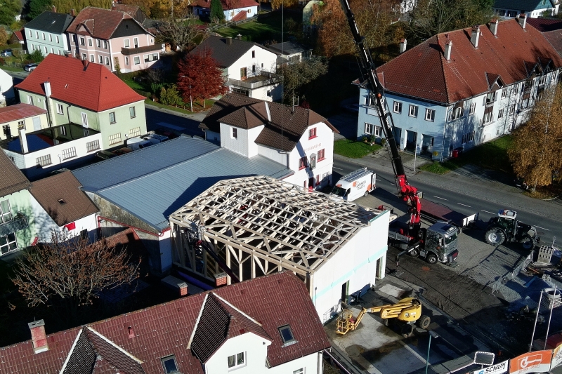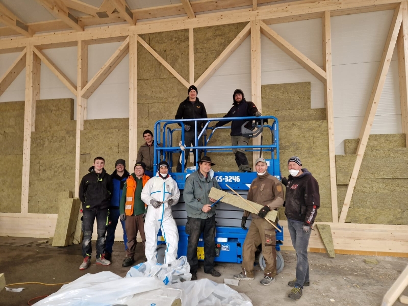 | KW 45-2025 | Aufstellen der Halle und des Dachstuhles sowie Stopfen Brandschutz | ||