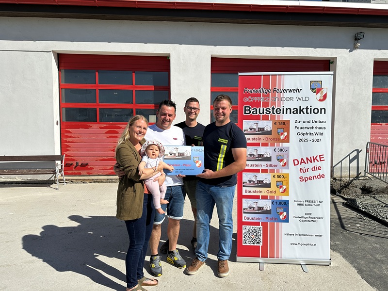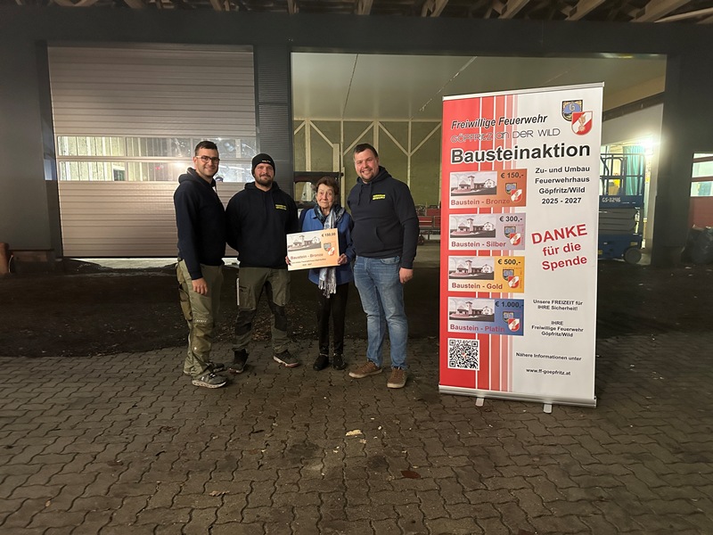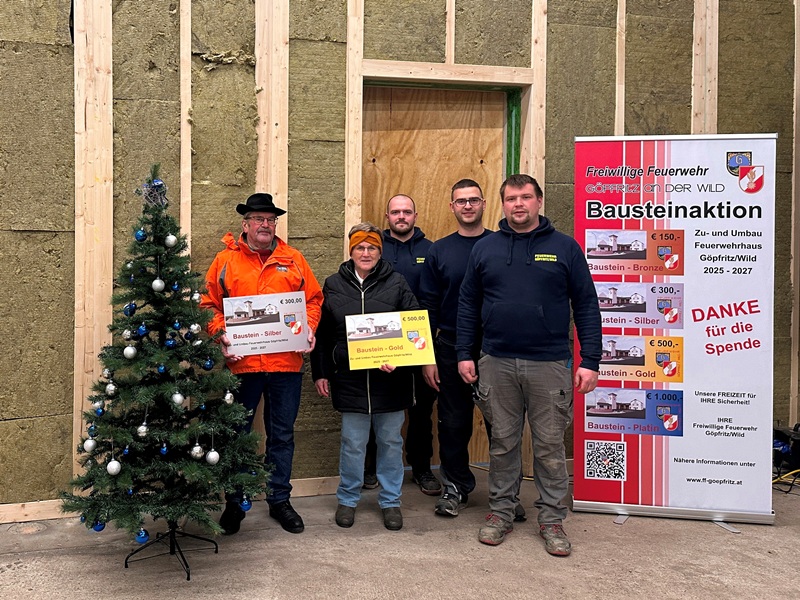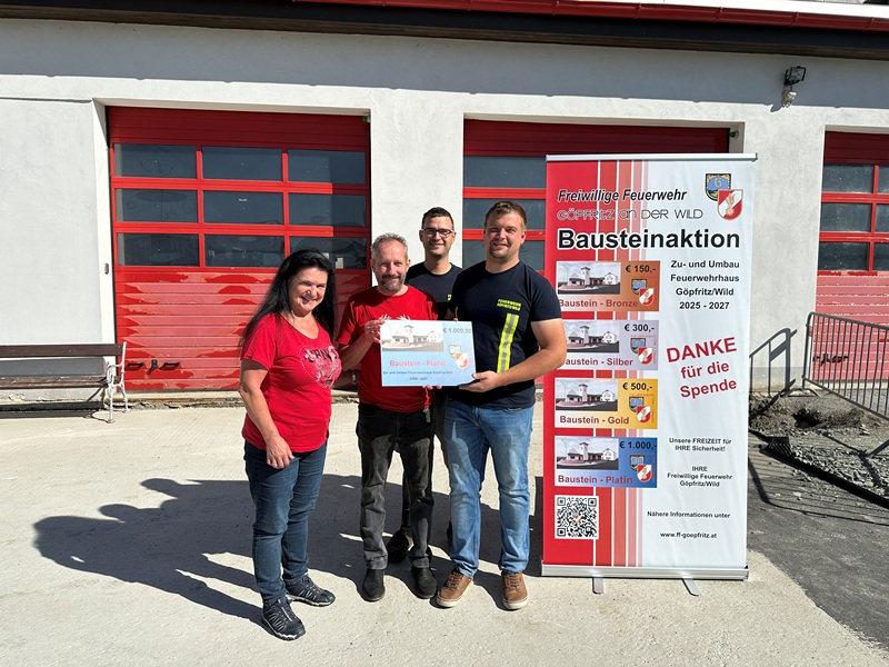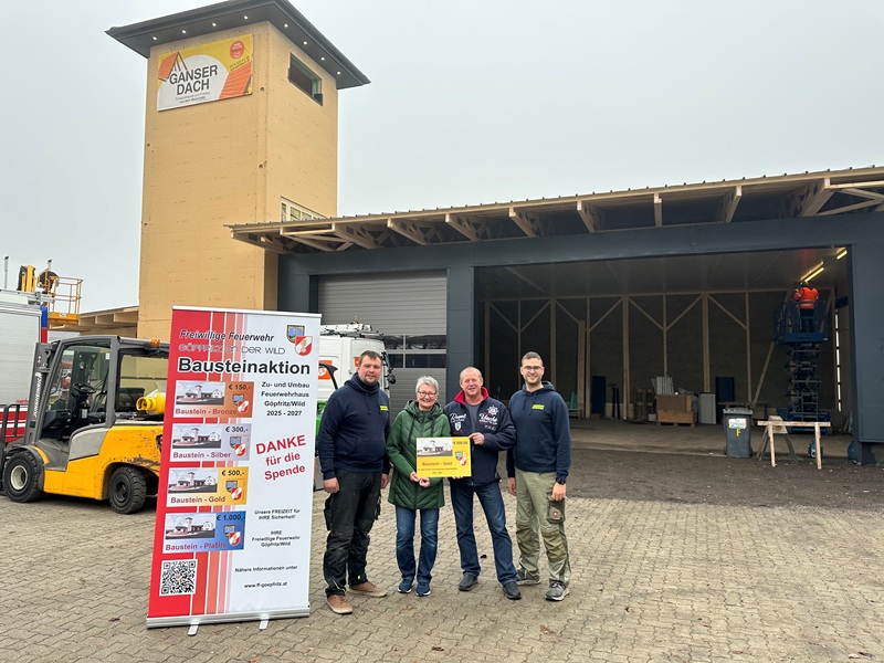 Mit dem Ankauf eines oder mehrere Bausteine unterstützen Sie direkt die Mitglieder der Freiwilligen Feuerwehr Göpfritz/Wild beim Bau des neuen Feuerwehrhauses. Als Zeichen der Wertschätzung erhalten Sie einen dauerhaften Platz auf der Ehrentafel im neuen Gebäude.