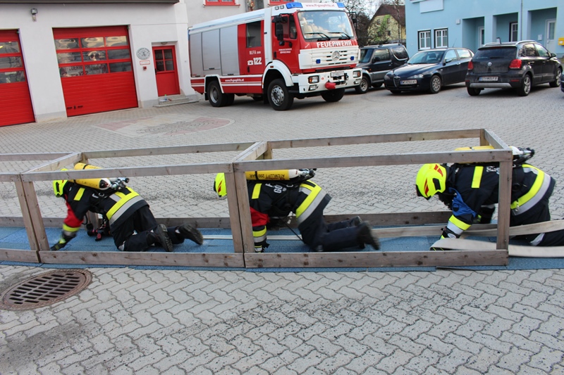 Bei der Ausbildungsprüfung "Atemschutz" wird nicht Wert auf schnelles Arbeiten gelegt, sondern darauf, dass innerhalb des Trupps die Zusammenarbeit einwandfrei funktioniert. Ebenso wird besonders darauf geachtet, dass sich die Truppmitglieder richtig ausrüsten und sicher arbeiten.