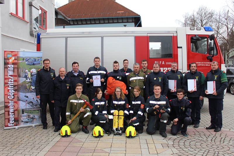 Nach der Absolvierung der Ausbildungsprüfung in Bronze im Jahr 2012, Silber im Jahr 2015 konnten heuer abermals ein Trupp in Bronze und ein Trupp um das Abzeichen in Silber und zwei Trupps um das Abzeichen in Gold antreten. Gemeinsam mit der Freiwilligen Feuerwehr Merkenbrechts bereitete man sich in den letzten 6 Wochen mit 16 Übungen vor. Insgesamt stellten sich 12 Mitglieder der Freiwilligen Feuerwehr Göpfritz/Wild und 7 Mitglieder der Freiwilligen Feuerwehr Merkenbrechts der Prüfung. Bei der Prüfung gilt es insgesamt 4 Stationen innerhalb einer gewissen vorgegeben Zeit zu absolvieren. Aus folgenden Stationen besteht die Prüfung: