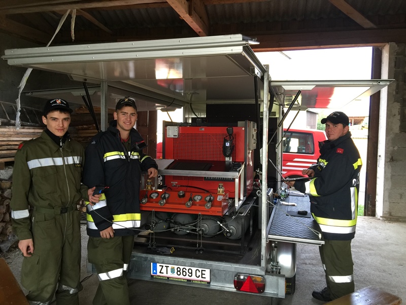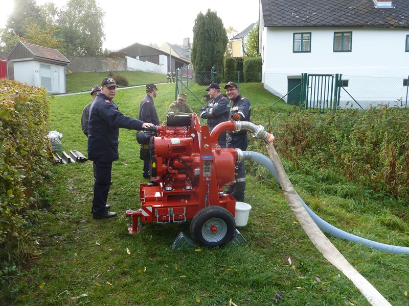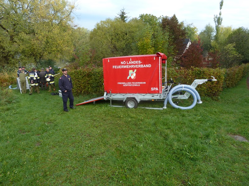 Da die SPA 200 seit Oktober 2014 bei der Freiwilligen Feuerwehr Göpfritz/Wild stationiert ist, wurde auch hier die Gelegenheit ergriffen und die Sonderpumpanlage wurde den Feuerwehren des gesamten Abschnittes gezeigt.