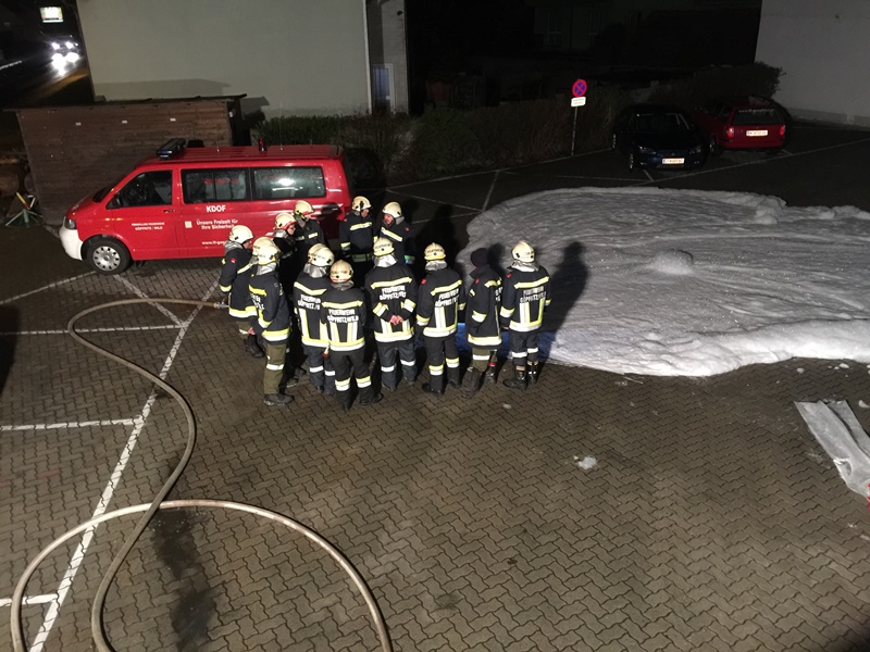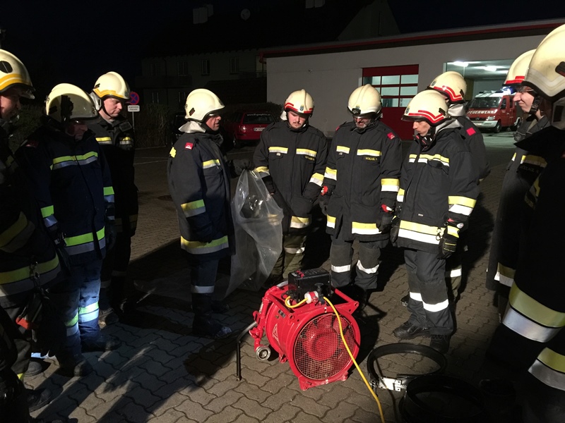 Um das richtige, fehlerfreie und sichere Arbeiten im Einsatzfall garantieren zu können, müssen diverse Arbeitsabläufe immer wieder geübt und wiederholt werden. Aus diesem Grund war es Ziel dieser Übung das richtige und effiziente Arbeiten sowohl mit dem Überdruckbelüfter als auch mit den unterschiedlichen Schaumrohren zu beüben.