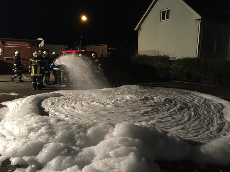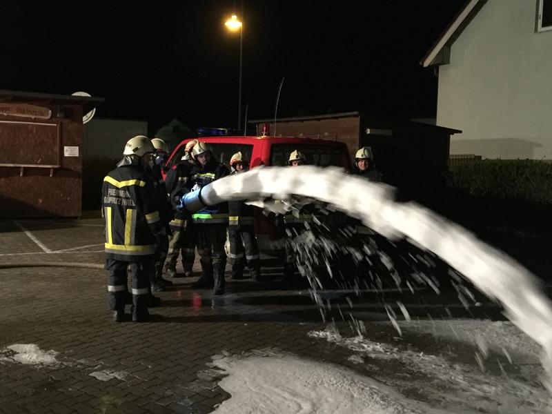 Weiters konnten die Mitglieder bei der Verwendung des Mittel- und Schwerschaumrohrs besonders gut die Unterschiede dieser beiden Schaumrohre in der Praxis erkennen - wie z.B. die unterschiedliche Reichweite oder Haftfähigkeit.