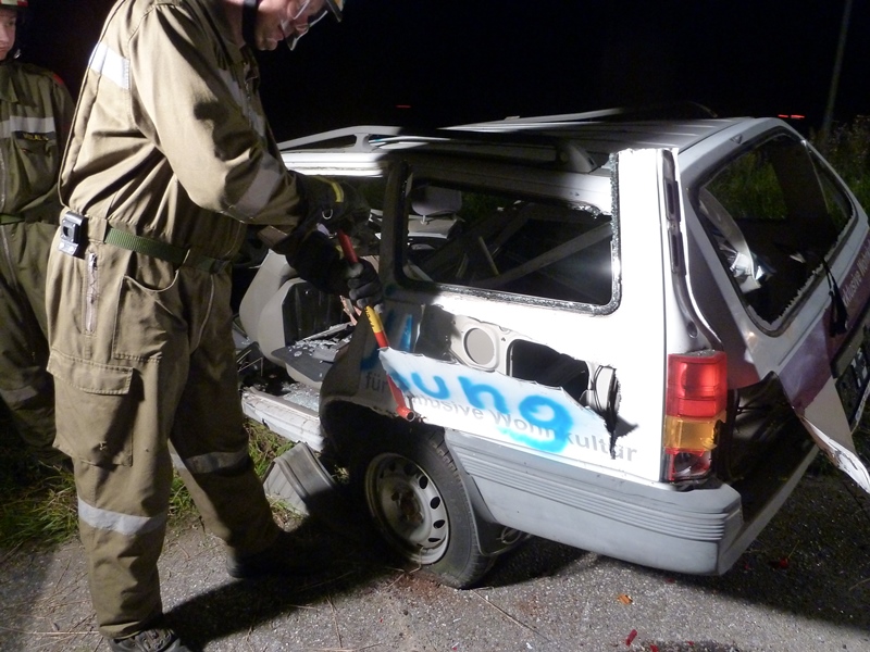 Anschließend wurde noch mit dem hydraulischem Rettungszylinder gearbeitet und man konnte sehen, wie sehr man mit dem Rettungszylinder deformierte Stellen ausformen kann, ohne am Auto mit der Rettungsschere arbeiten zu müssen.