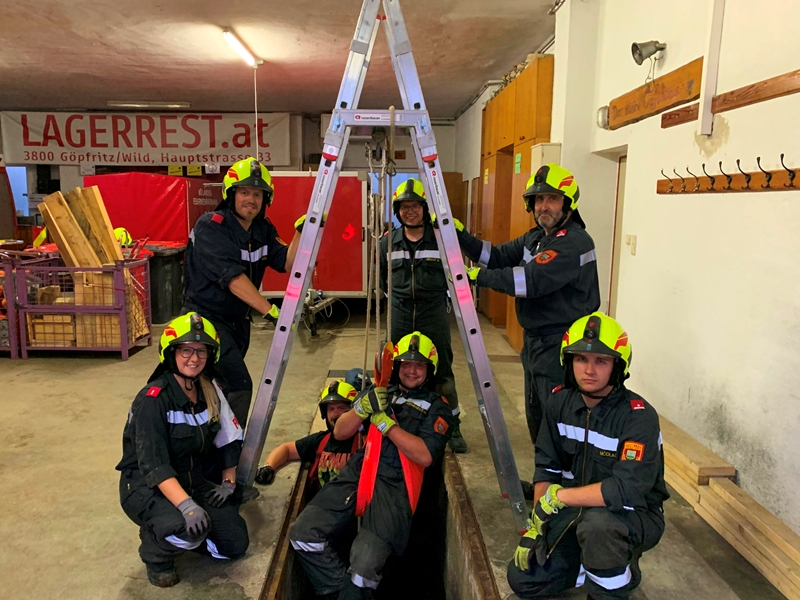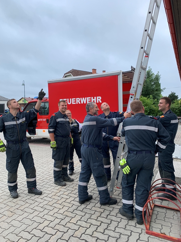 Göpfritz/Wild - Mehrere Mitglieder der Freiwilligen Feuerwehr Göpfritz/Wild nahmen am 2. Juli 2021 an einer Übung mit dem Schwerpunkt "Verwendung Steckleiter" teil.