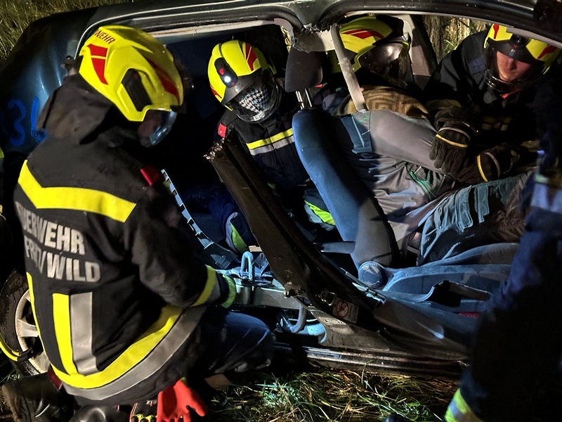 Die eingesetzen Mitglieder des RLFA und des VF´s sicherten in weiterer Folge die Unfallstelle ab, bauten eine Beleuchtung sowie den Brandschutz auf, sicherten gemeinsam mit der FF Merkenbrechts die beiden Fahrzeuge gegen ein weiteres Abrutschen. In weiterer Folge führten die Mitglieder die Menschenrettung unter Zuhilfenahme des hydraulischen Rettungsgerätes durch, wobei die Arbeiten stets unter der Aufsicht der Übungsleiter standen.