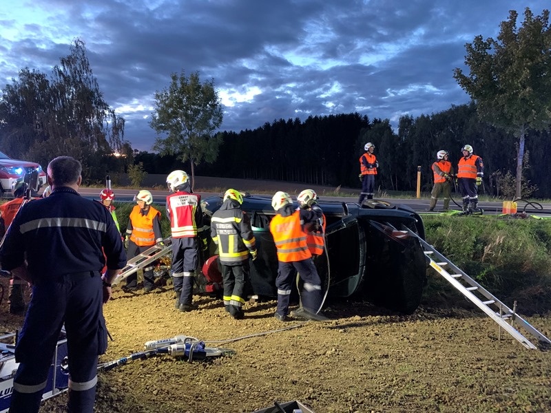 Groß Siegharts - Unter der Übungsleitung der Feuerwehr Groß-Siegharts-Stadt fand in den Abendstunden des 1. Oktobers 2019 eine technische Übung auf dem, dzt. aufgrund einer Baustelle für den Verkehr gesperrrten, Abschnitt der L55 zwischen Schönfeld und Groß Siegharts statt.