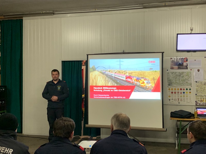 Den Beginn machte der Vortrag "Einsatz im ÖBB Gleisbereich". Vom regionalen Sicherheitsbeauftragten der ÖBB wurde ein interessanter und lehrreicher Vortrag in Bezug auf den Umgang der Einsatzkräfte im ÖBB Gleisbereich gehalten. Dabei erhielten die Feuerwehrmitglieder einen Einblick in die interne Abwicklung eines Notfalles und wie sich Einsatzkräfte zu verhalten haben. Gleichzeitig wurden nützliche Tipps gegeben, um so ein reibungsloses Zusammenarbeiten zu gewährleisten.