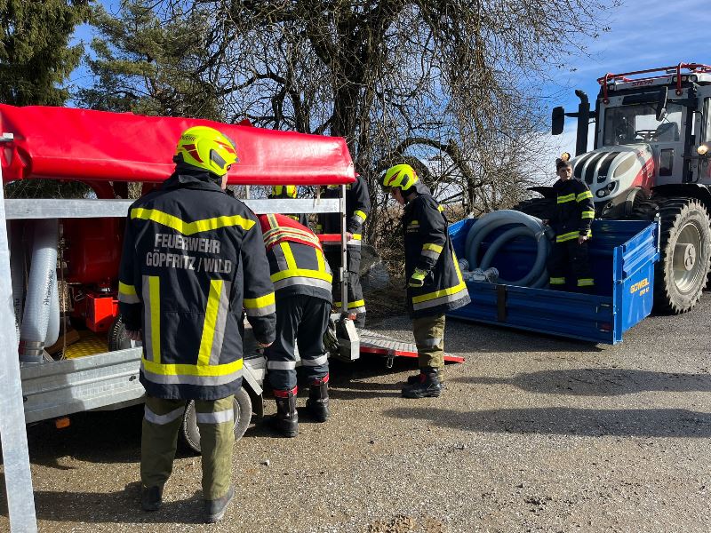 Nach der Alarmierung um 09:06 Uhr durch Florian Zwettl, rückten die Göpfritzer Feuerwehrkräfte mit dem RLFA 2000, LFA mit der SPA, MTF/VF mit dem ALA und mit dem KDOF zum angegebenen Lotsenpunkt am TÜPL aus. Übungsannahme war der Brand eines größeren Waldstückes, wobei es galt mehrere Verteidigungslinien aufzubauen um ein Übergreifen des Feuers zu verhindern.