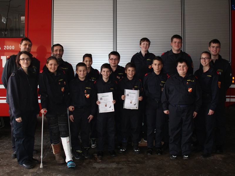 Zwei Feuerwehrjugendmitglieder konnten die 1. Erprobung sowie weitere zwei Feuerwehrjugendmitglieder konnten die 2. Erprobung absolvieren. Fünf Feuerwehrjugendmitglieder (unter 12 Jahre) bestanden mit Bravour die Prüfung für das Erprobungsspielabzeichen.