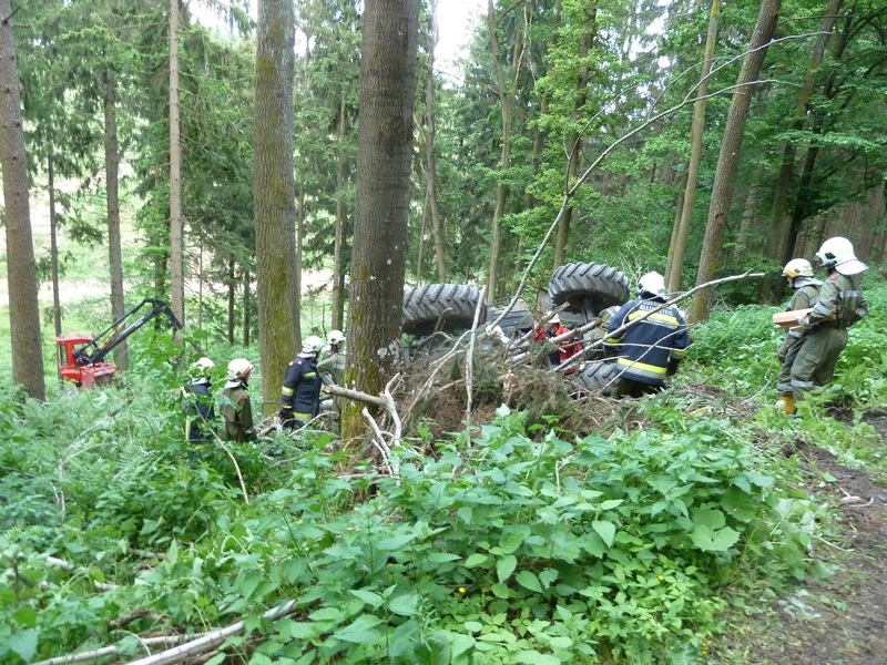 Ein Forstarbeiter ist bei Holzschlägerungsarbeiten im steilen Gelände mit seinem Traktor verunglückt und wurde unter dem Fahrzeug eingeklemmt.