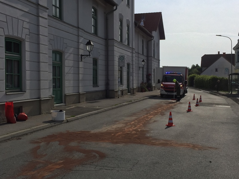 Ölspur in der BahnhofsstraßeGöpfritz/Wild - Die Freiwillige Feuerwehr Göpfritz/Wild wurde am Mittwoch, dem 30. Mai 2018 um 07:50 Uhr, von Florian Niederösterreich mittels stillem Alarm zu einem Schadstoffeinsatz im Ortsgebiet von Göpfritz/Wild alarmiert.