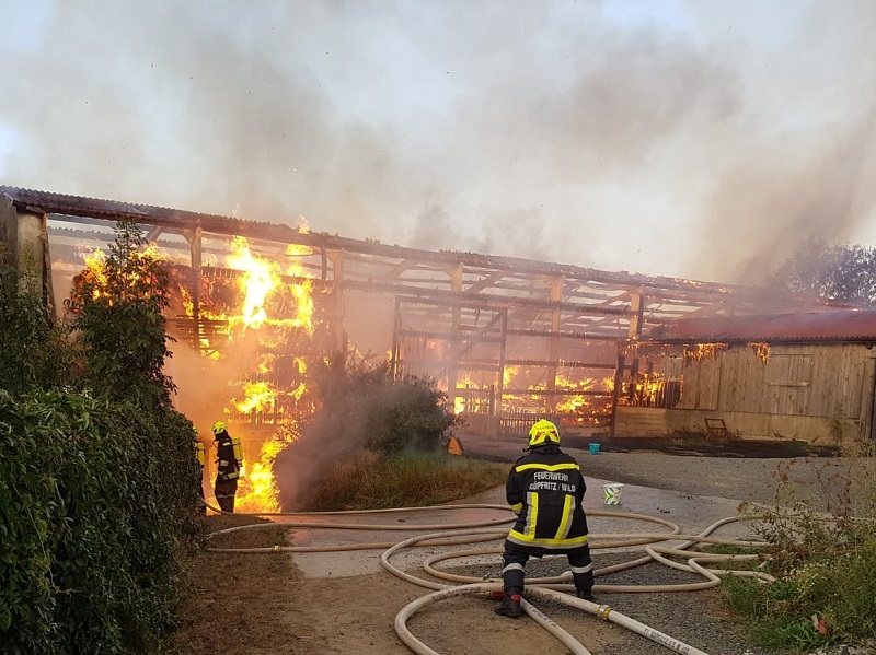 Merkenbrechts - Die Freiwillige Feuerwehr Göpfritz/Wild wurde am 17. August 2018 um 19:27 Uhr, von Florian Niederösterreich mittels Sirene und Pager zu einem Scheunenbrand in Merkenbrechts alarmiert.