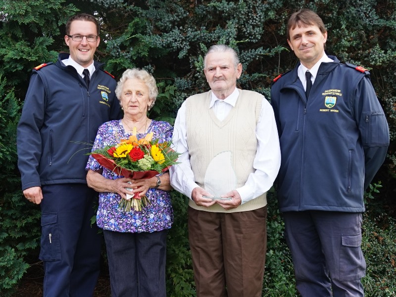 Die Mitglieder der FF Göpfritz/Wild empfingen das frisch vermählte Brautpaar mit einer Schlauchbogen-Spalier.