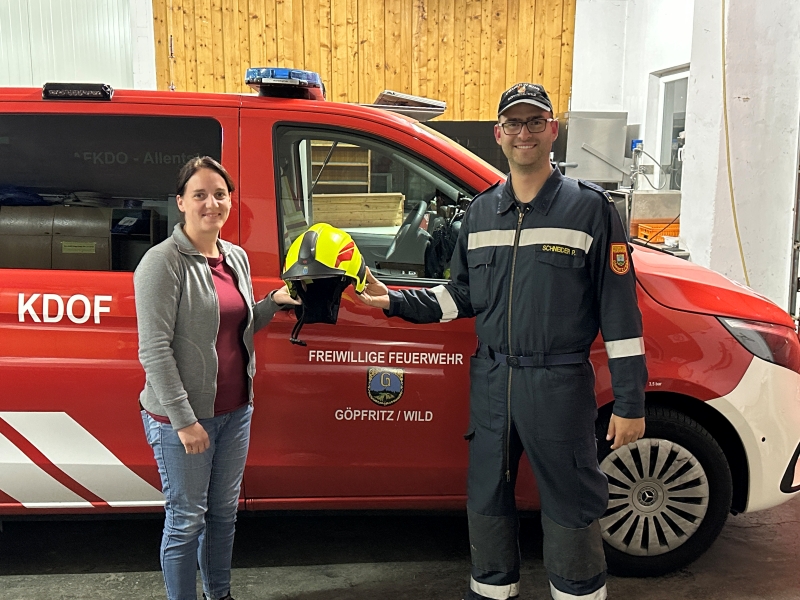 Im Oktober 2025 konnte der Leiter des Verwaltungsdienstes OV Patrick Schneider ein neues Feuerwehrmitglied - Bianca Steinbauer - in den Reihen der Freiwilligen Feuerwehr Göpfritz/Wild begrüßen.