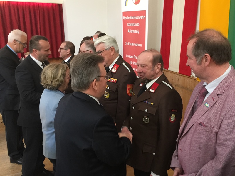 LAbg. Franz Mold überreichte in Vertretung von Landeshauptfrau Mag. Johanna Mikl-Leitner sowie im Beisein von Bezirkshauptmann WHR Dr. Michael Widermann, wie auch ranghohen Feuerwehrfunktionären wie Feuerwehrviertelsvertreter LFR Erich Dangl und Bezirksfeuerwehrkommandantstellvertreter BR Karl Kainrath, Auszeichnungen des Landes Niederösterreichs für 60, 50, 40 und 25 Jahre verdienstvolle Tätigkeit auf dem Gebiete des Feuerwehr- und Rettungswesens.