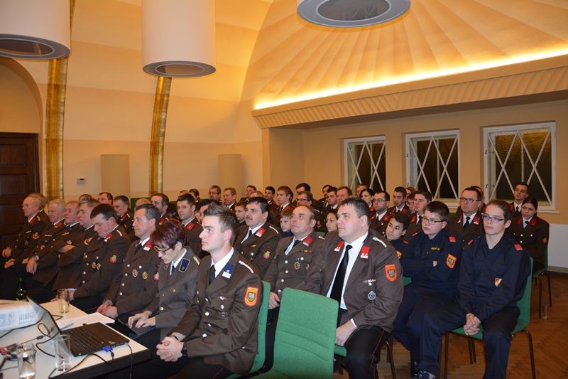 Kommando neuGöpfritz/Wild - Feuerwehrkommandant BR Christian Hübl konnte am Dienstag, dem 5. Jänner 2016, 63 Feuerwehrmitglieder zur Mitglieder- und Wahlversammlung im neuen Festsaal der Marktgemeinde Göpfritz/Wild begrüßen - ein besonderer Gruß galt Vizebürgermeister Dir. Werner Scheidl, welcher ebenfalls an der Sitzung teilnahm und während der Wahl den Vorsitz übernahm.