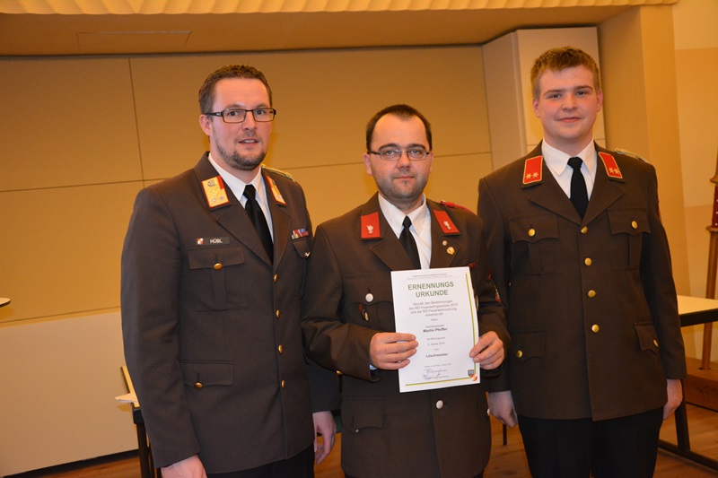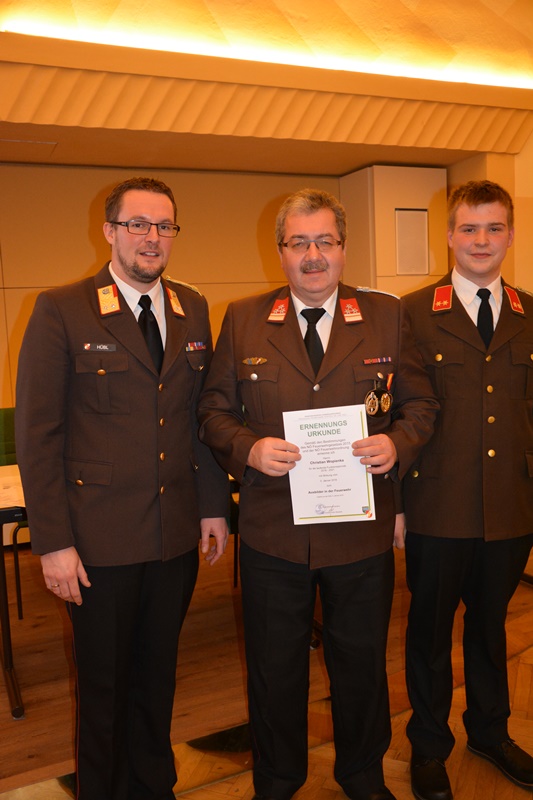 Aufgrund der Tatsache, dass im Jänner 2016 wieder eine 5-jährige Funktionsperiode in der Feuerwehr zu Ende geht, bedankte sich Feuerwehrkommandant BR Christian Hübl bei jenen Mitgliedern, die in der letzten Funktionsperiode in der Feuerwehr Göpfritz/Wild als Chargen, Fachchargen oder Sachbearbeiter tätig gewesenen sind.