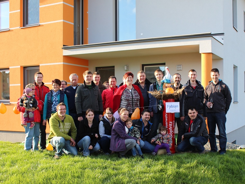 Die Mitglieder der Feuerwehr Göpfritz/Wild rückten am Abend des 19. Aprils zu einem "Einsatz" der besonderen Art aus und überbrachten ihre Glückwünsche symbolisch mit einem Storch, welcher im Garten vor dem Haus aufgestellt wurde.