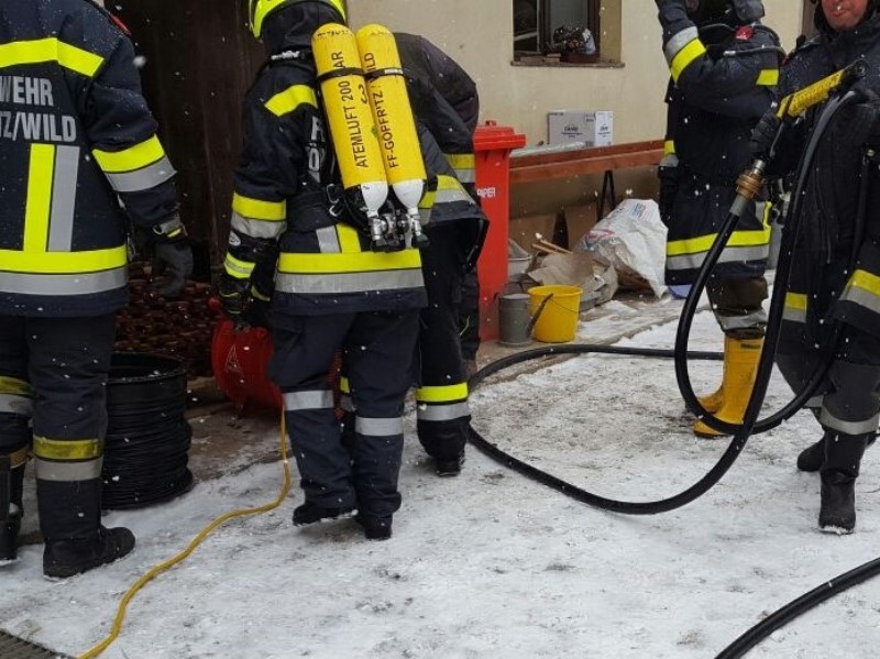 Unter der Einsatzleitung von HBM Thomas Weidenauer konnten bereits wenige Minuten nach der Alarmierung 15 Mitglieder der Freiwilligen Feuerwehr Göpfritz/Wild mit RLFA 2000 und LFA zur angegebenen Einsatzadresse ausrücken. Während der Anfahrt zum Einsatzort rüsteten sich schon drei Mitglieder für einen möglichen Atemschutzeinsatz aus.