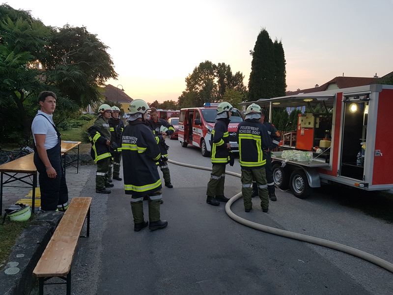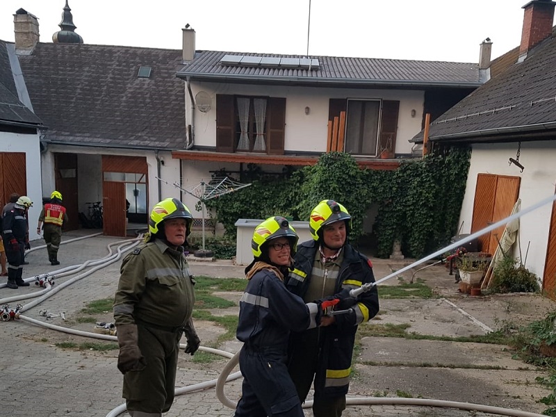 - Pumpe Göpfritz (LFA) erhielt den Auftrag die Nachbargebäude auf der West-Seite zu schützen (die Löschwasserversorgung konnte aufgrund der Nähe zum Löschteich selbst mittels TS sichergestellt werden)