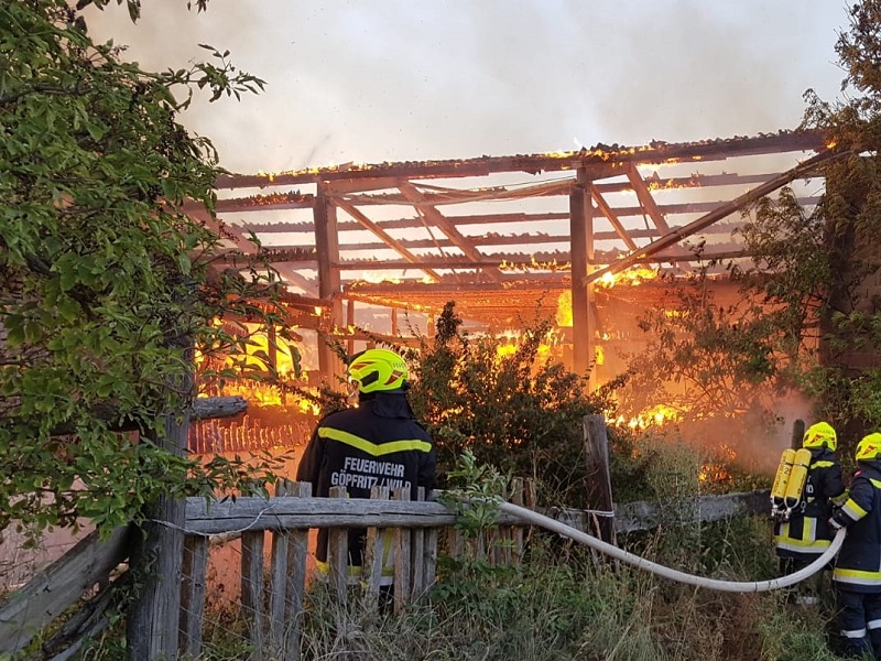 Merkenbrechts - Die Freiwillige Feuerwehr Göpfritz/Wild wurde am 17. August 2018 um 19:27 Uhr, von Florian Niederösterreich mittels Sirene und Pager zu einem Scheunenbrand in Merkenbrechts alarmiert.