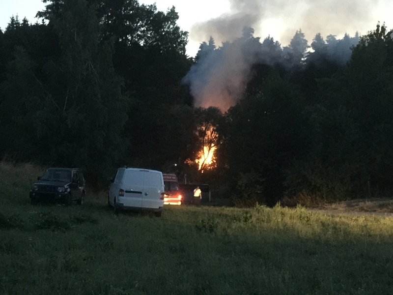 Ein Reisighaufen begann aus bisher unbekannter Ursache, in der Nähe der Kläranlage Groß Haselbach, zu brennen und drohte auf den angrenzenden Wald überzugreifen.