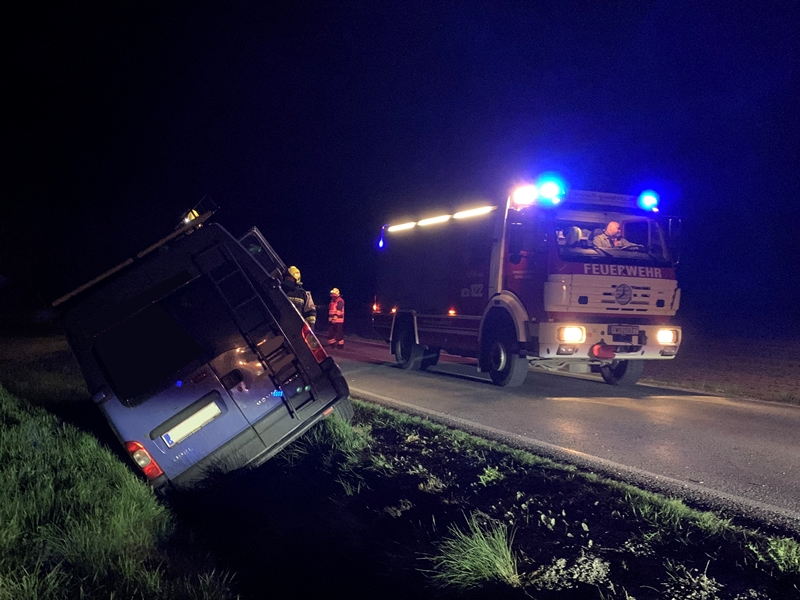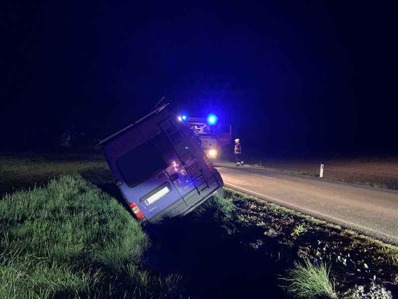 Der Lenker eines Kleintransporters kam aus bisher unbekannter Ursache von der Straße ab, wobei der Kleintransporter - seitlich im Graben liegend - zum Stillstand kam.